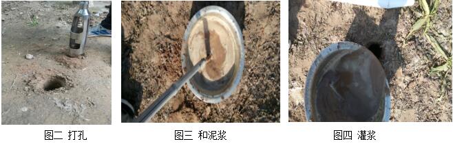 a. 將泥漿慢慢倒入孔洞,大概到孔洞1/2的位置;可根據(jù)實際情況酌情增減。