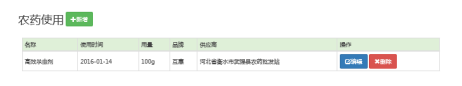 5、農藥使用流程。名稱、類型、品牌、供應商、使用日期、使用方法、廠家資質、銷售單位資質。