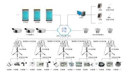本系統(tǒng)主要由云平臺無線數(shù)劇采集器、傳感器、應用終端、視頻采集系統(tǒng)、圖片拍照系統(tǒng)、語音與視頻交互系統(tǒng)、云平臺組成。后臺數(shù)據(jù)處理系統(tǒng)及信息監(jiān)控管理云平臺、數(shù)據(jù)采集器、傳感器、視頻監(jiān)控系統(tǒng)、無線傳輸系統(tǒng)組成。監(jiān)測子站集成;數(shù)據(jù)平臺是一個互聯(lián)網(wǎng)架構的網(wǎng)絡化平臺,具有對各子站的監(jiān)控功能以及對數(shù)據(jù)的報警處理、記錄、查詢、統(tǒng)計、報表輸出等多種功能。