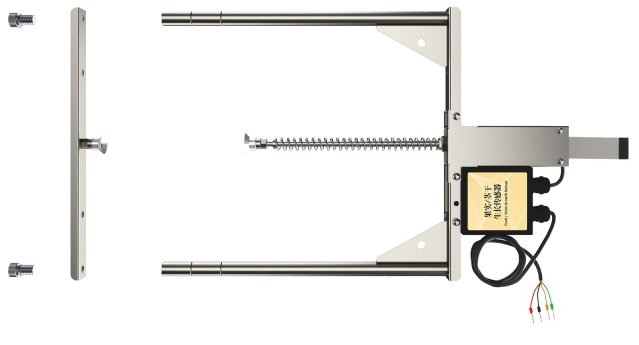 果實(shí)/莖干生長傳感器是一種位移增量傳感器,測量原理是利用果實(shí)/莖干生長傳感器移動的距離,來測量植物果實(shí)或植物根莖的生長長度,記錄了完整果實(shí)/根莖的生長尺寸。